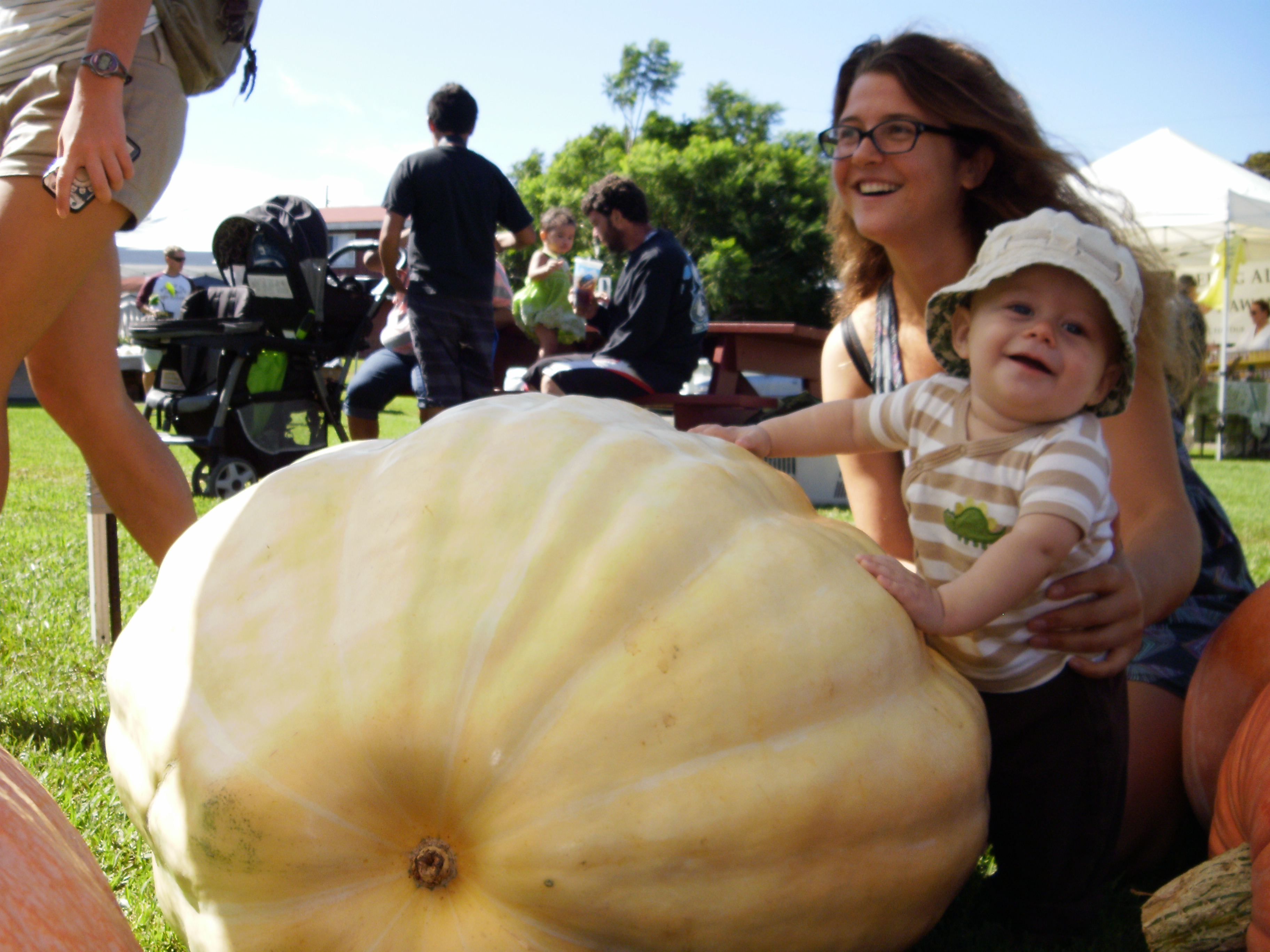 Baby Max showed the enthusiasm that we all felt. Here Max celebrates Donna’s pumpkin. Council woman Margaret Wille joined Donna Mitts and myself in a photo among the giant pumpkins. Chefs and home cooks alike marveled at the culinary possibilities.
